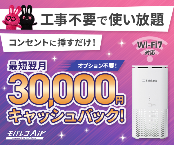 SoftBank Air(ソフトバンクエアー) では、SoftBank Air(ソフトバンクエアー) 公式キャンペーン「SoftBank Air スタート割プラス」を実施中です。[期間限定: 2022年10月7日(金)〜2023年4月3日(月)10月20日(木)]終了済